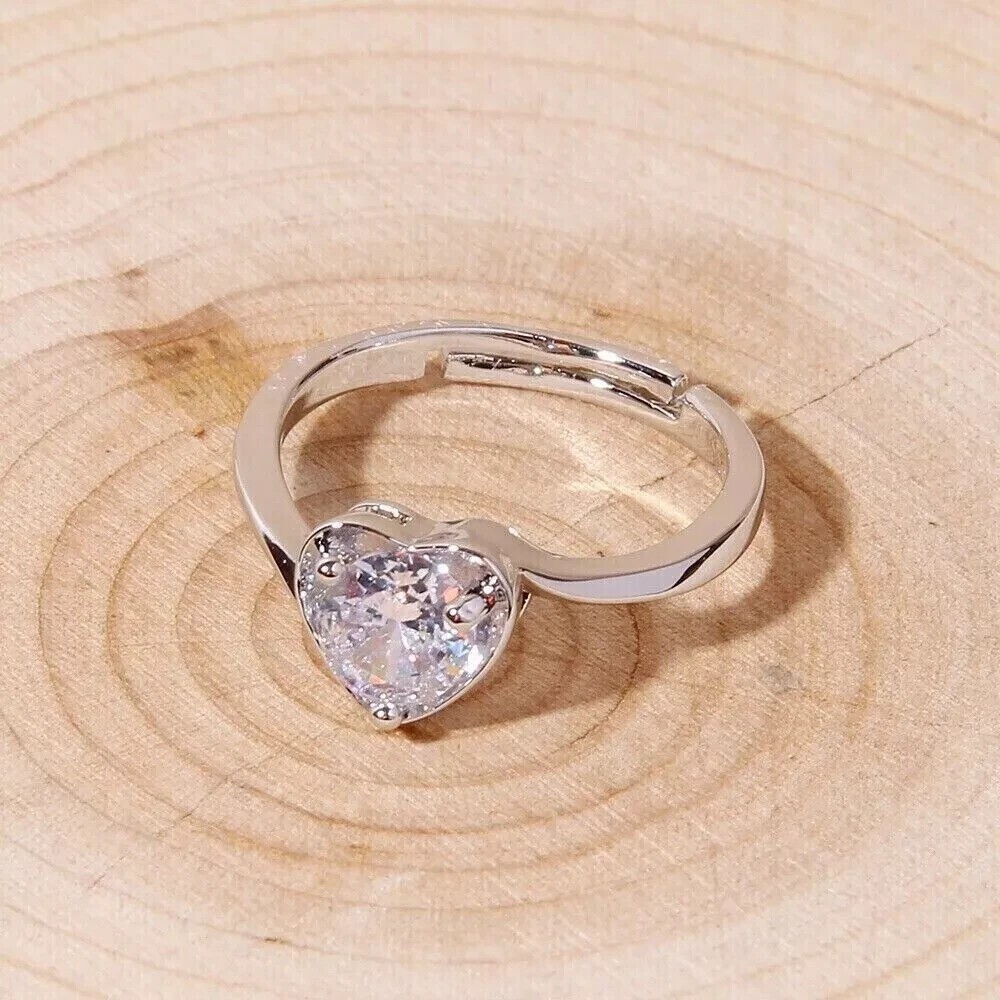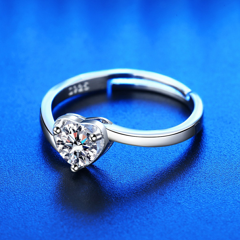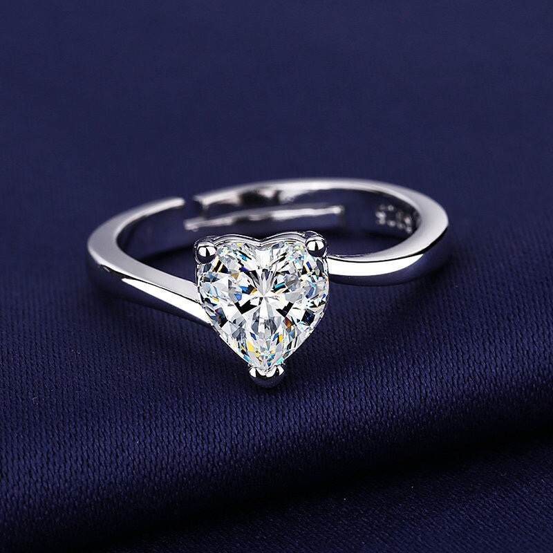 Korean version fashion diamond set heart single diamond ring women's simple heart shape cute girl opening adjustable ring jewelry