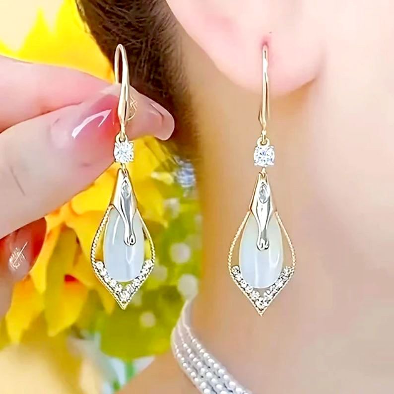 ঝলমলে সাদা স্টোনের সারি দুলটিকে দিয়েছে বাড়তি উজ্জ্বলতা ও আভিজাত্য।
